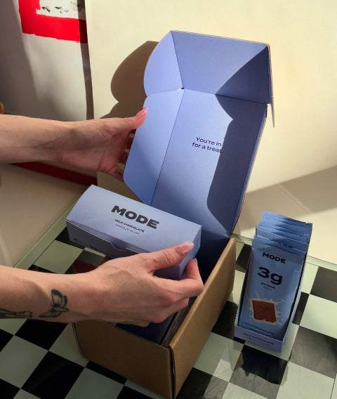 Contains 94% less sugar than traditional chocolate bars.*